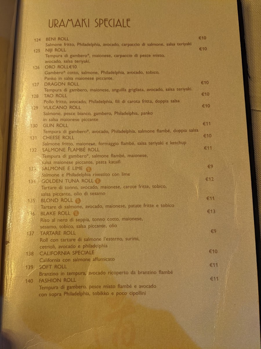 “ Overall a good experience. One of the best gnocchi di riso I had lately, chewy and savoury! Generous portion of sashimi of very good quality. Good meat dumpling, ok fish dumplings. Good (not the best) uramaki. Really appreciated the choices of tacos, house specialty and the new and different menu (from the classic Japanese one) ”